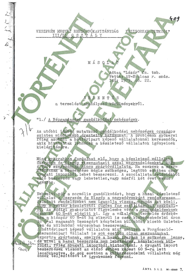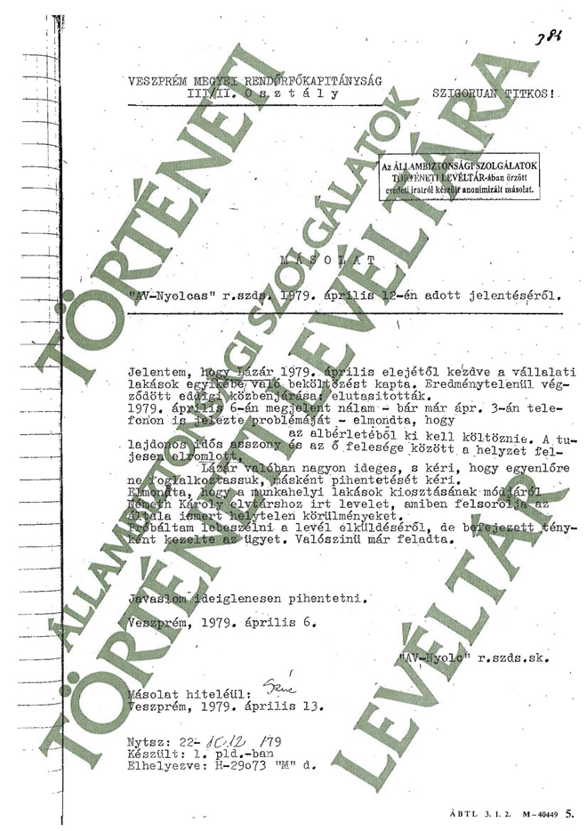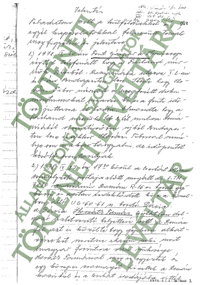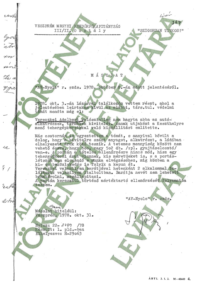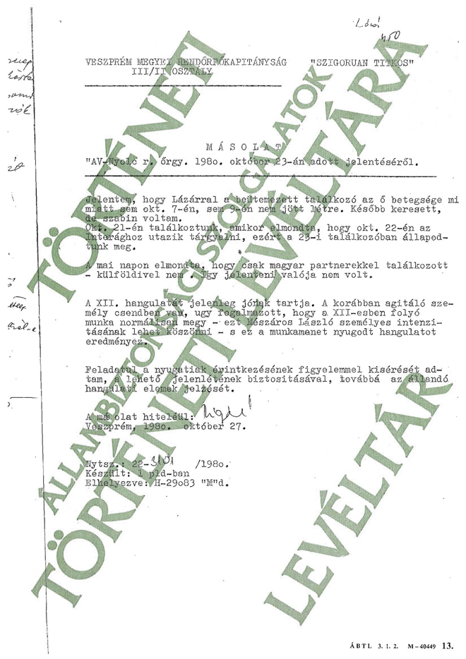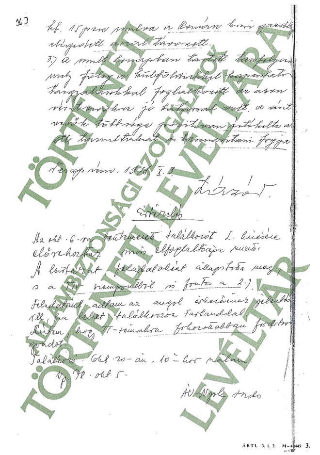 AV-8 SZT tiszt jelentései M-40449 jelzetű dossziéban