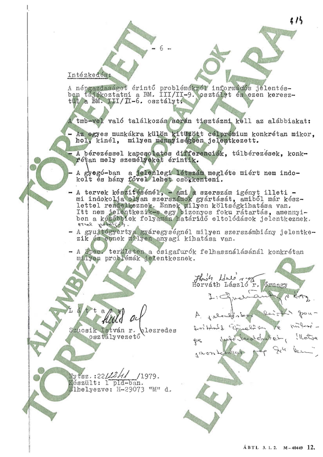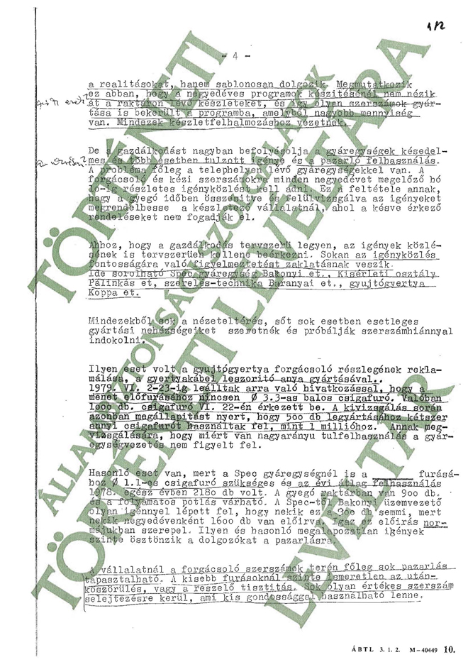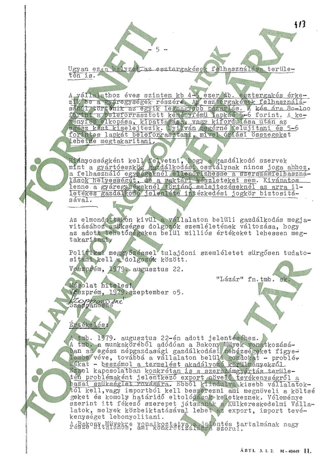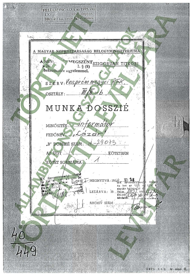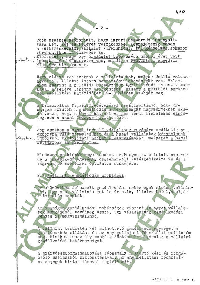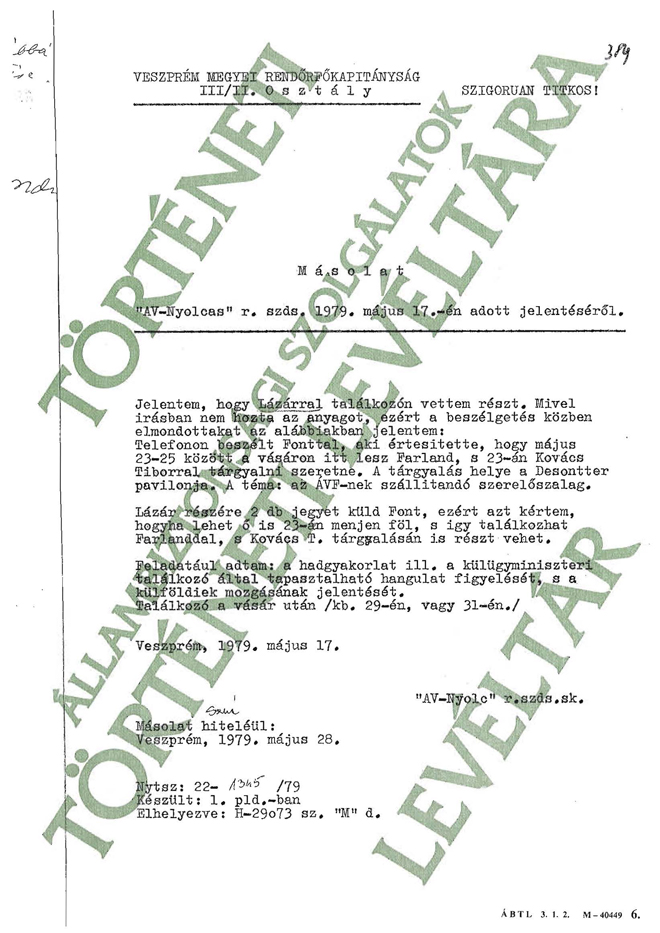 AV-8 SZT tiszt jelentései M-40449 jelzetű dossziéban