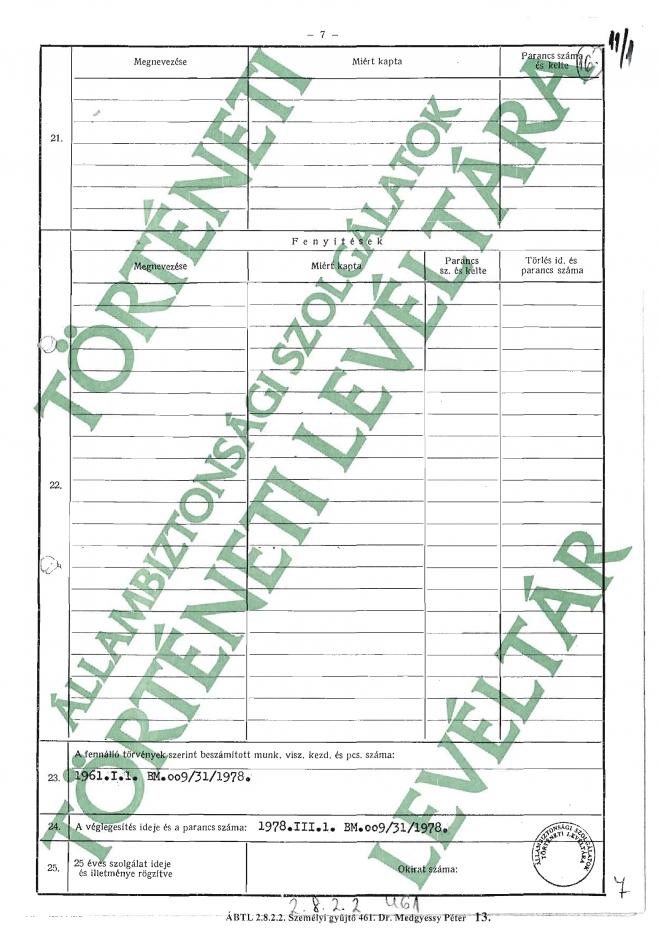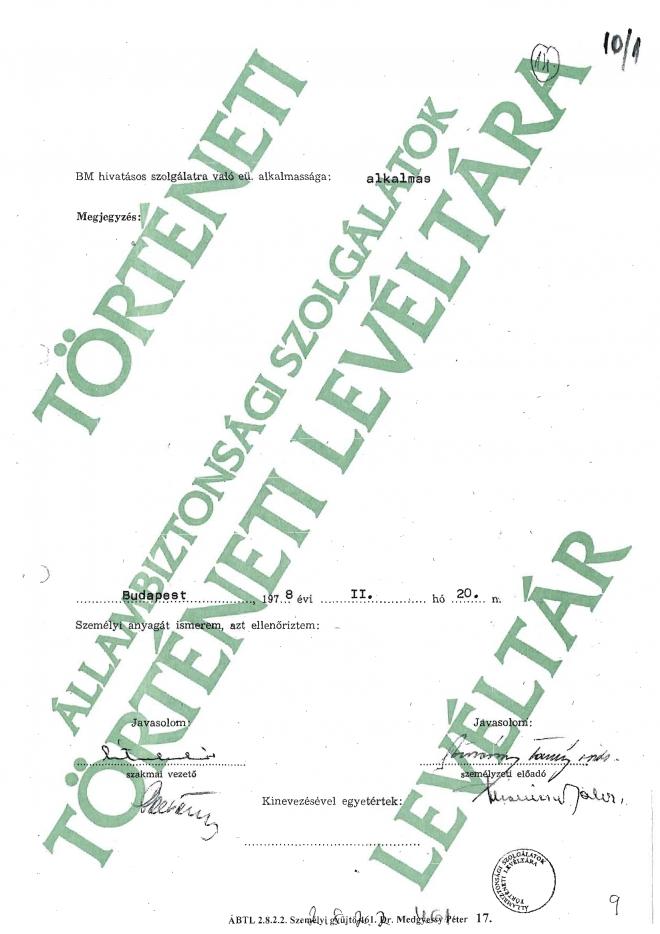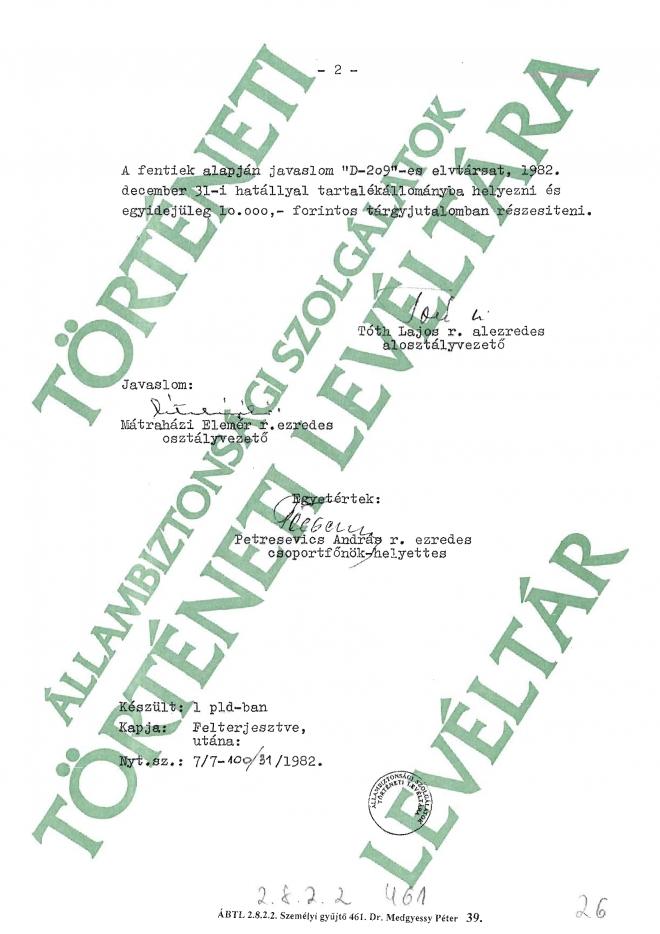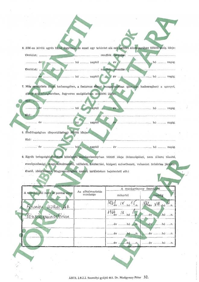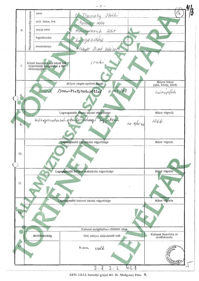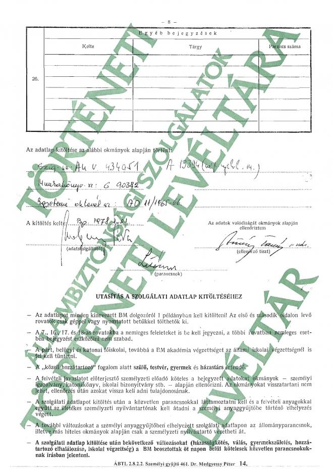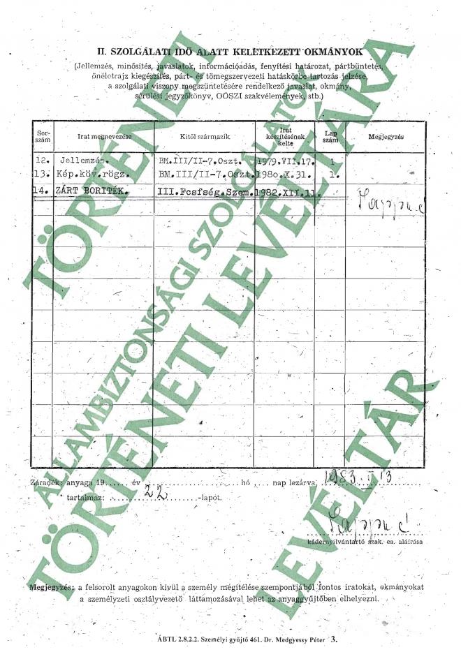 D-209 SZT tiszt fogyatéki személyi anyaga