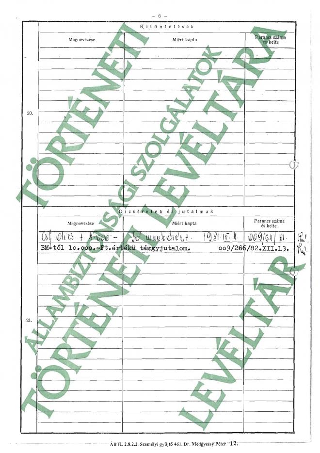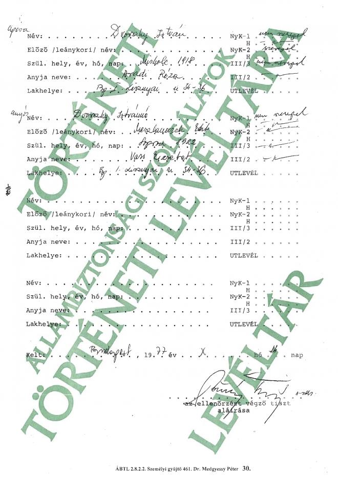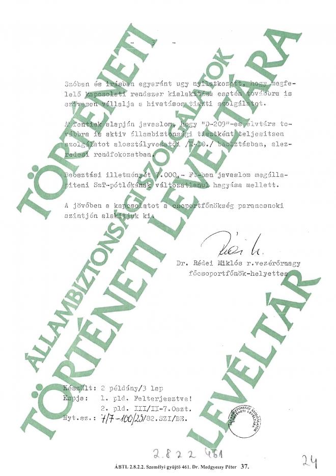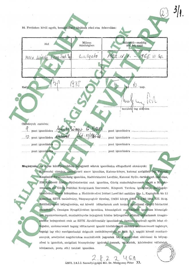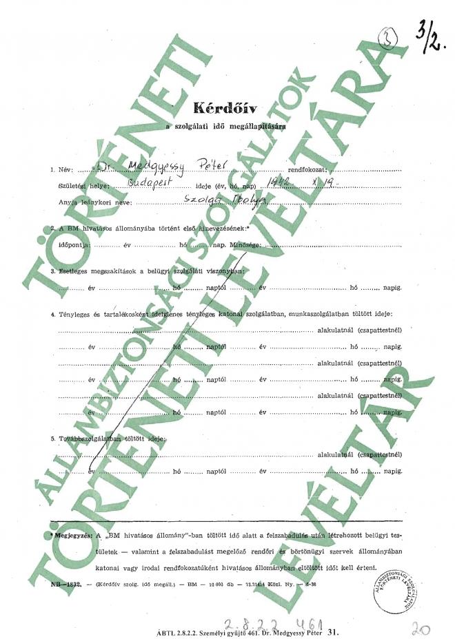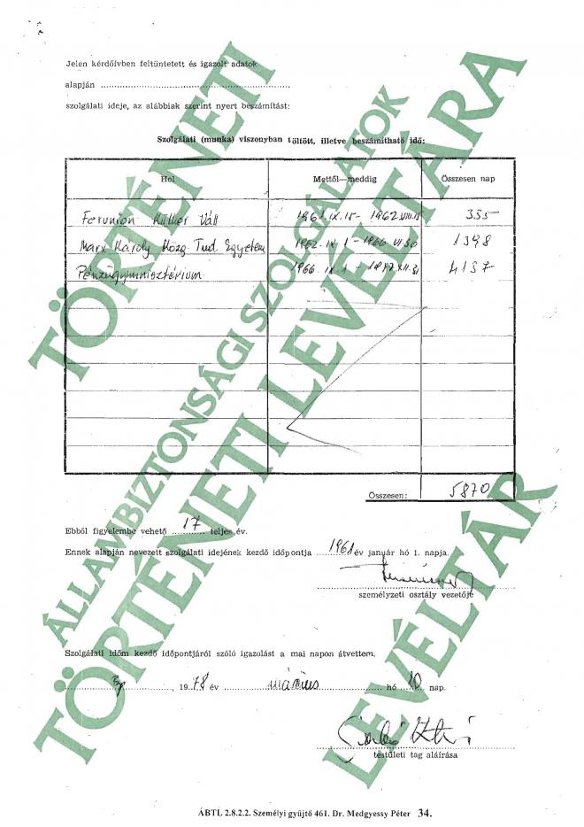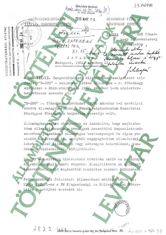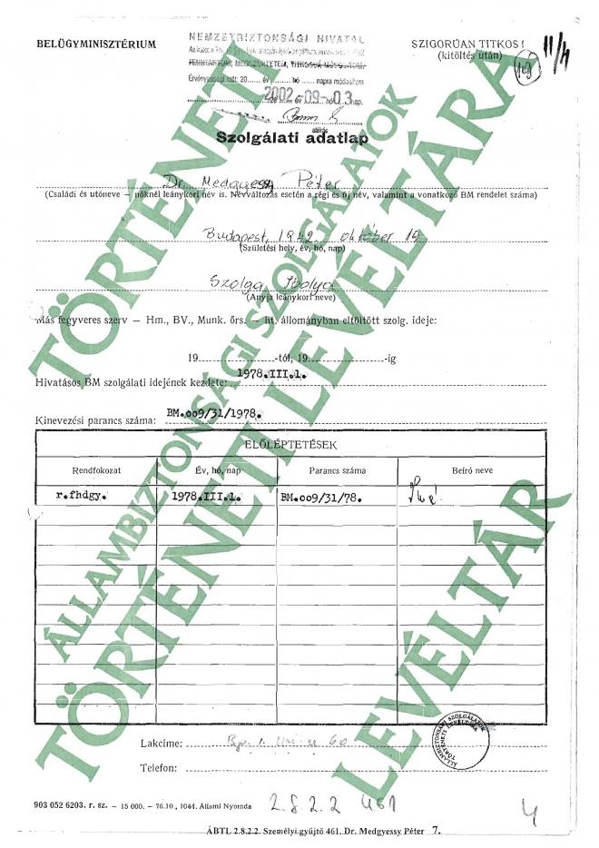 D-209 SZT tiszt fogyatéki személyi anyaga