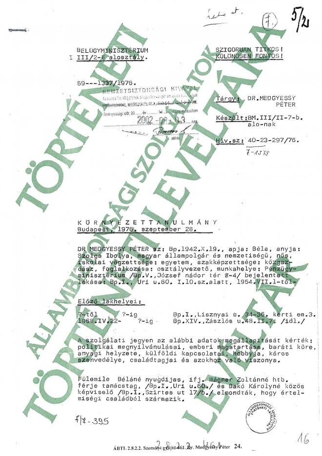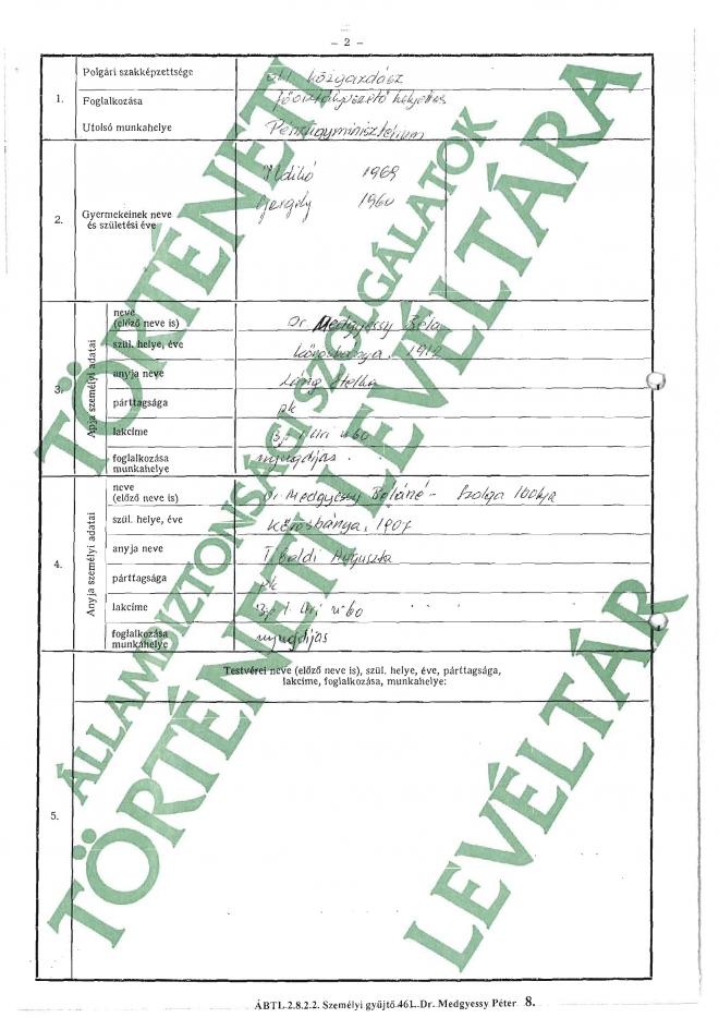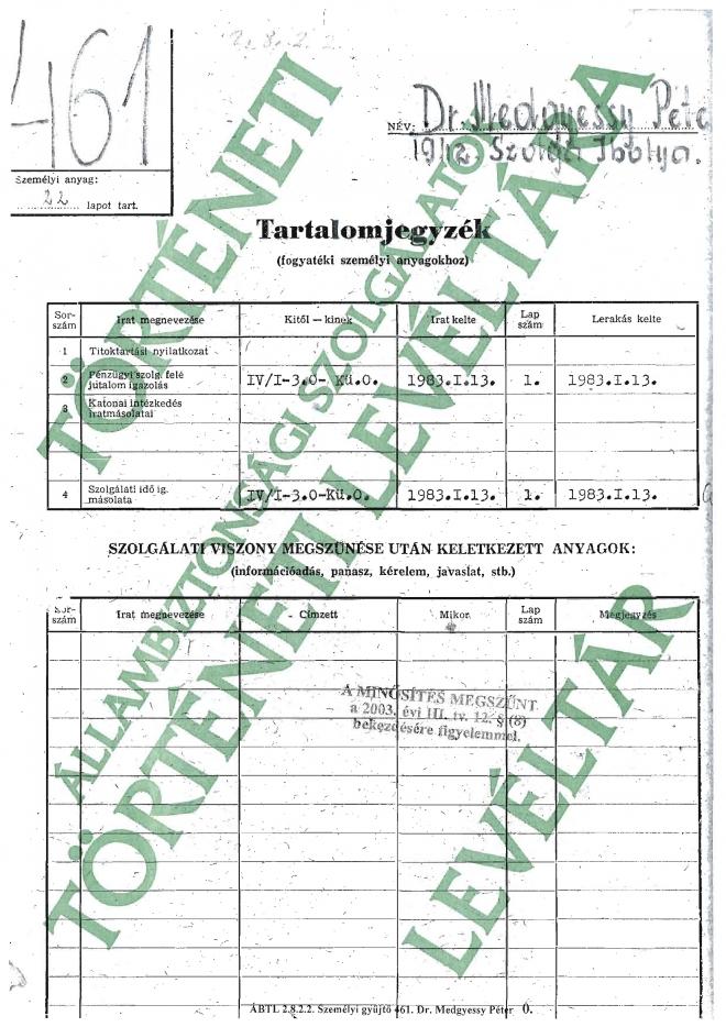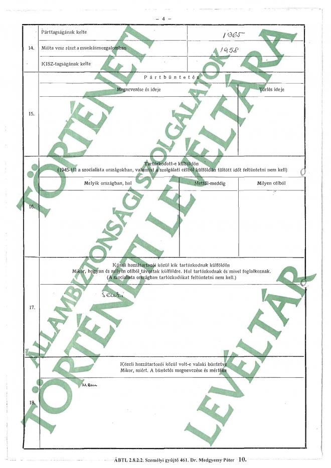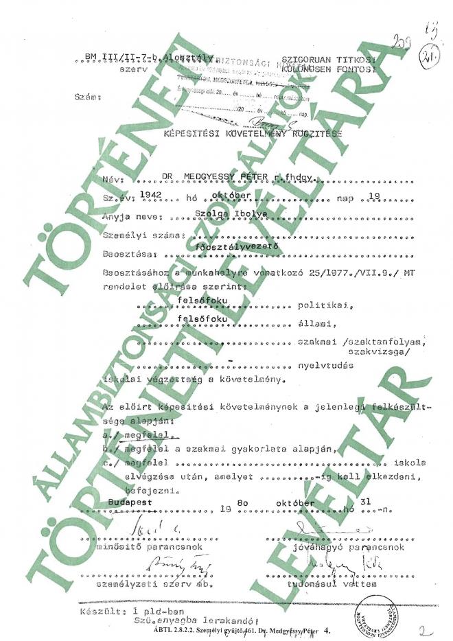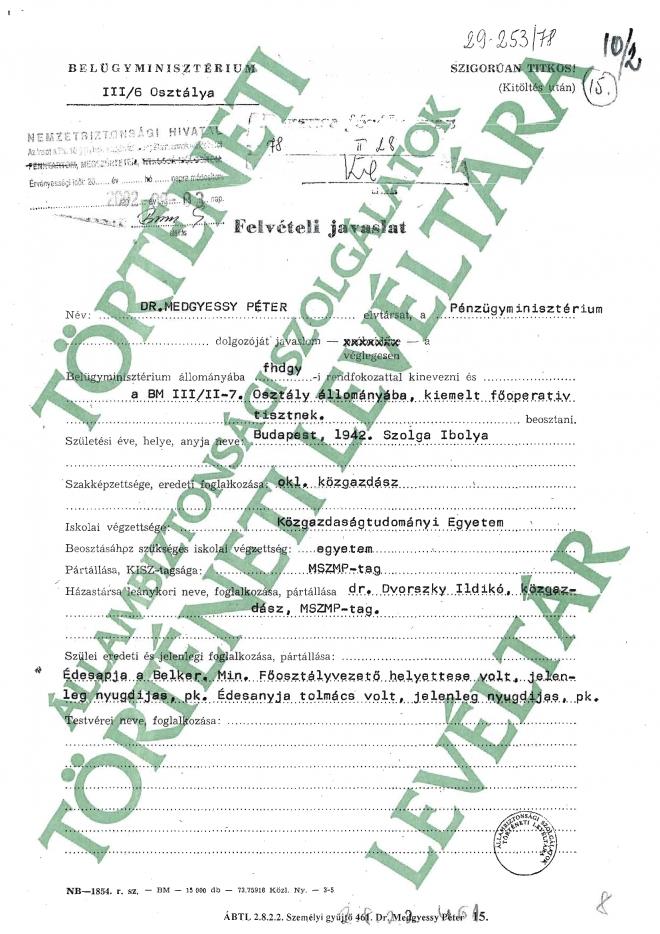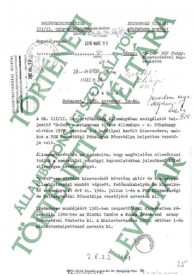 D-209 SZT tiszt fogyatéki személyi anyaga