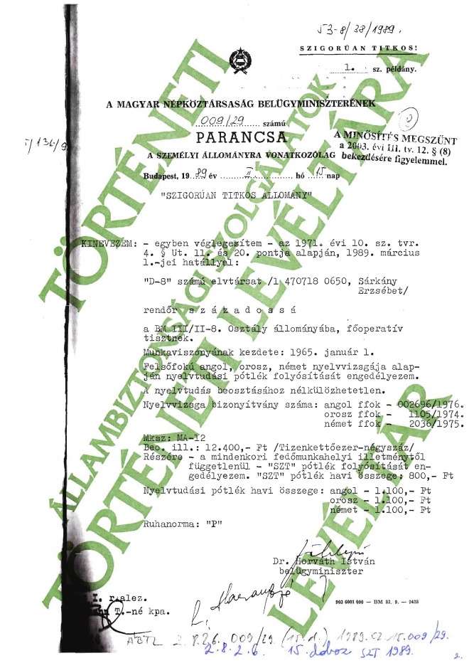 D-8 SZT tiszt kinevezési parancsa