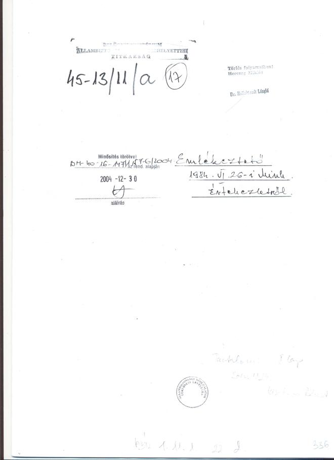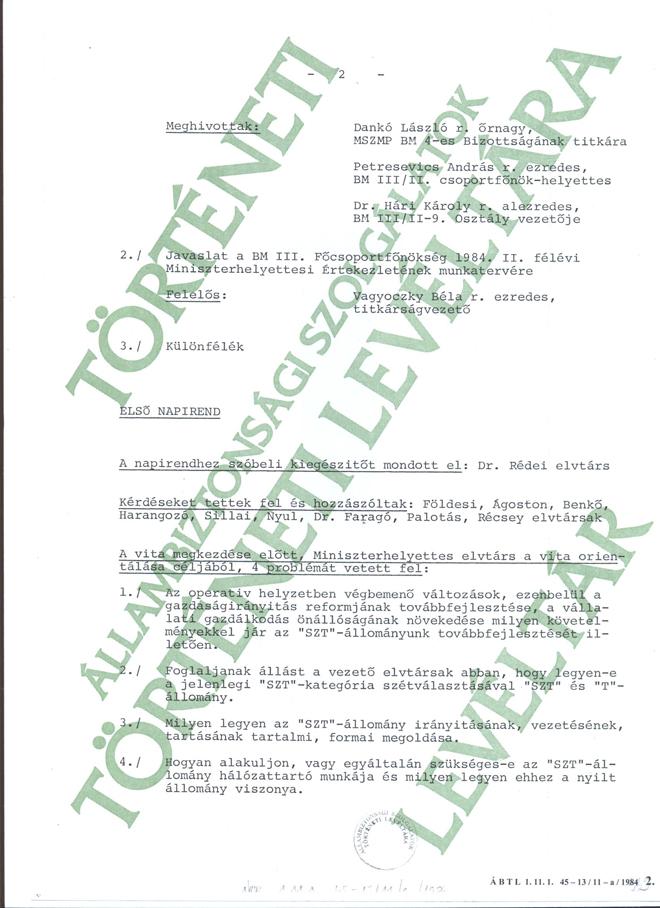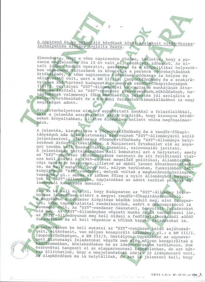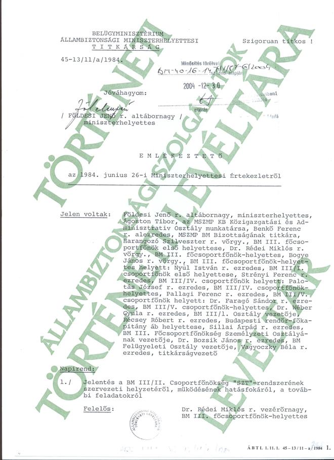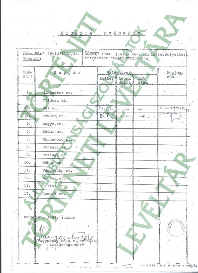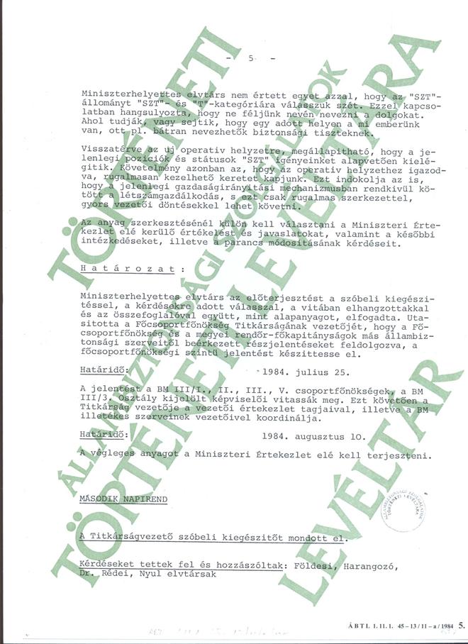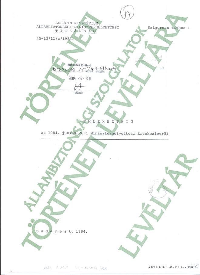 Emlékeztető 1984.6.16-i Miniszterhelyettesi Értekezletről