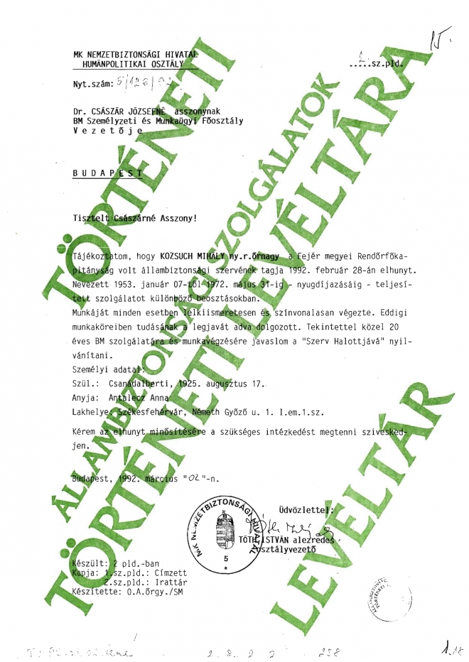 T-44 SZT tiszt "Szerv halottjává" nyilvánítási kérelem